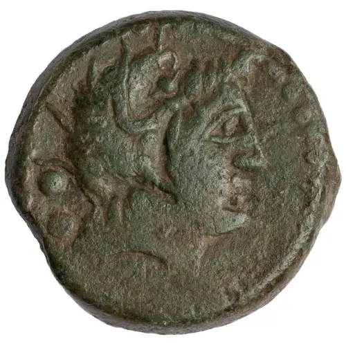 | Popis líce | Nethuns wearing ketos headdress facing right with legend below and two dots behind. |