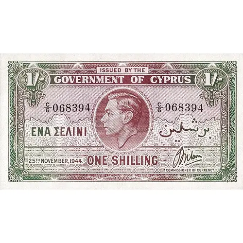 | Obverse lettering | Issued by the Government of Cyprus Ενα Σελινι One Shilling |
