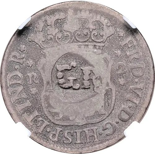 | Obverse lettering | • FR • VI • D • G • HISP • ET • IND • R • G.R. R 2 (Translation: Ferdinand VI, by the Grace of God, king of Spain and the Indies. King George.) |