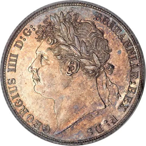 | Obverse description | Laureate portrait of King George IV left, legend around. |