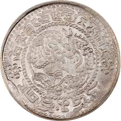 | Obverse description | Dragon with clouds around surrounded by Tibetan characters. |