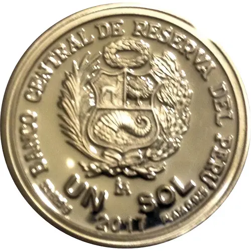 | Obverse lettering | BANCO CENTRAL DE RESERVA DEL PERU UN SOL 33.625g 2017 PLATA 0.925 (Translation: CENTRAL RESERVE BANK OF PERU ONE SOL SILVER) |