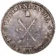 In the center, a pike topped by the Phrygian cap, to the they are tied with a ribbon, a feather and a sword, surrounded by legend divided by two rosettes. |