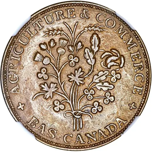 | Obverse lettering | ☩ AGRICULTURE & COMMERCE ☩ BAS - CANADA |