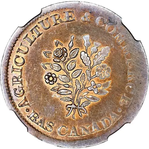 | Obverse lettering | ☩ AGRICULTURE & COMMERCE ☩ BAS - CANADA |
