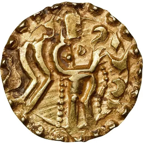 | Obverse description | Archer King standing with bow in hand and a flaming standard with symbols and degraded legend around. |