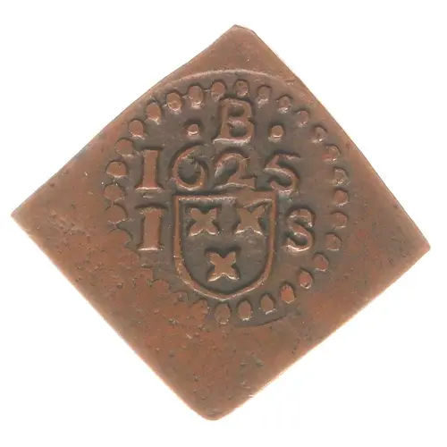 Obverse description Arms of Breda divide value, letter B and date above, all within beaded circle.