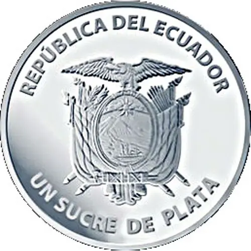 | Chữ khắc mặt trước | REPUBLICA DEL ECUADOR UN SUCRE DE PLATA (Translation: Republic of Ecuador One silver sucre) |