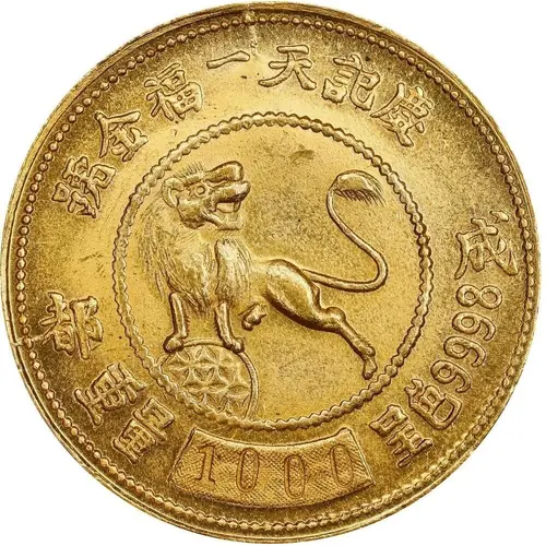 | Obverse lettering | 慶記天一福金鋪 成都 重量 1000 呈色9998 (Translation: Qingji Tianyeefou Goldsmith Chengdu Weight 1000 Fineness 9998) |