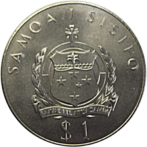 SAMOA I SISIFO FAAVAE I LE ATUA SAMOA $ 1 (Translation: Western Samoa God be the Foundation of Samoa) |