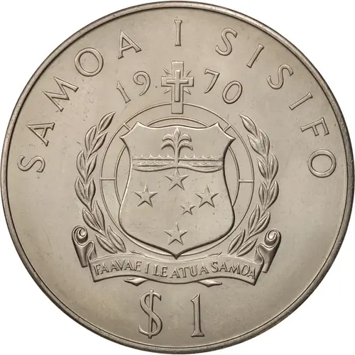 | Obverse lettering | SAMOA I SISIFO 19 70 PAAVAE I LE ATUA SAMOA $1 |