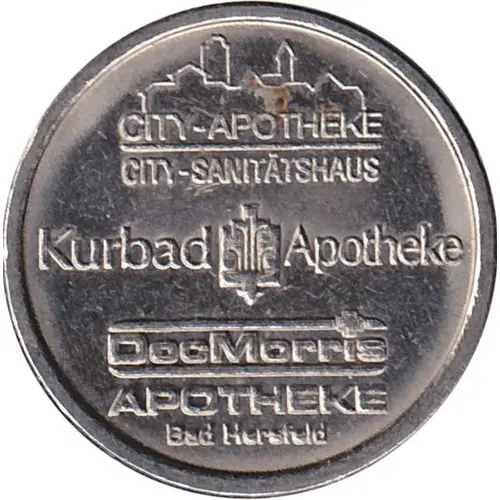 | Obverse lettering | CITY-APOTHEKE CITY-SANITÄTSHAUS Kurbad Apotheke DocMorris APOTHEKE Bad Hersfeld |