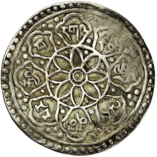 | Obverse description | Flower surrounded by Tibetan characters within the petals of an eight-petalled lotus. |