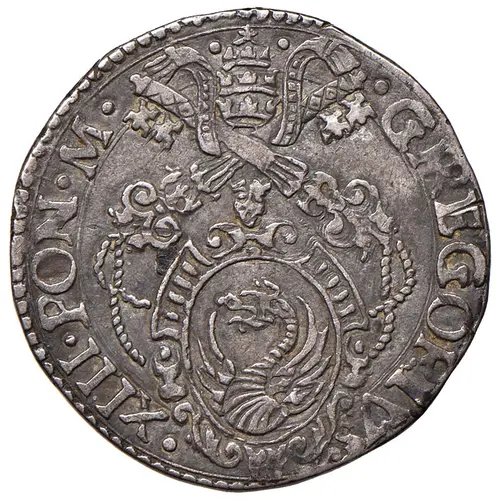 GREGORIVS·XIII·PON·M (Translation: Gregory 13th Supreme Pontiff) |