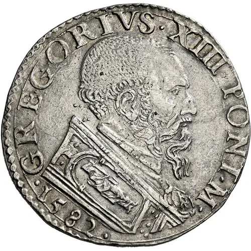 GREGORIVS٠XIII٠PONT٠ M٠ ٠1582٠ (Translation: Gregory 13th Supreme Pontiff) |