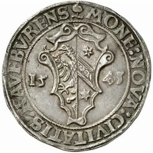 | Obverse lettering | MONE(TA): NOVA: CIVITATIS: KAVFBV(EI)REN(S). 15 43 |