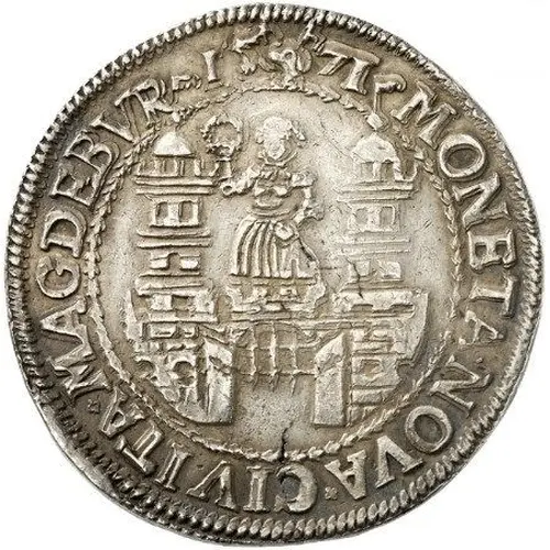 Obverse lettering MONETA. NOVA. CIVITA. MAGDEBVR. 15 71