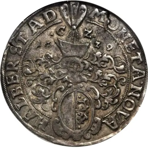 Artistry: The 1629 Halberstadt Thaler reflects the Late Renaissance to early Baroque numismatic style common in German states. While the engraver is typically unrecorded, the design prominently features the city's coat of arms on the obverse, often depicting an eagle and other heraldic elements. The reverse commonly displays the crowned double-headed Imperial Eagle, signifying its formal status within the Holy Roman Empire, encircled by the legend. This aesthetic prioritizes clear heraldry and legible inscriptions, typical of civic issues.