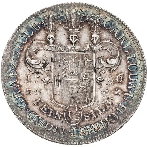 | Obverse lettering | CARL LUDW • U • H • CHRIST • FRIED • GRAF • Z • STOLB •, FEIN (11/2) SILB • below shield |