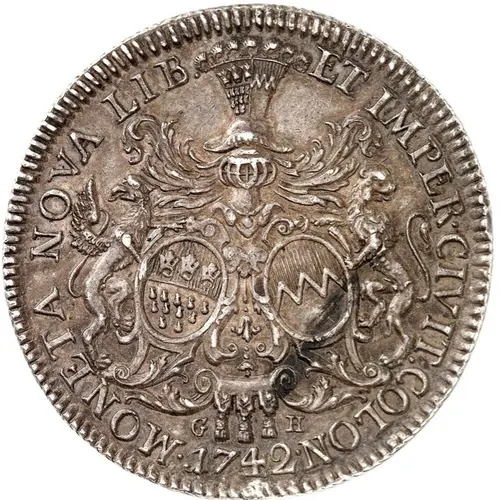 Chữ khắc mặt trước MONETA NOVA LIB. ET IMPER. CIVIT. COLON. G H 1742