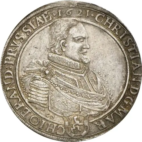 Artistry: While the specific engraver for this issue is often unrecorded, the coin's design reflects prevailing Late Renaissance to early Baroque stylistic traditions common in German states. The obverse likely features a dignified, armored bust or half-figure of Margrave Christian, presenting an image of authority befitting a wartime ruler. The reverse would showcase the complex dynastic arms of Brandenburg-Bayreuth, often multi-quartered and crowned, intricately rendered to assert sovereignty and lineage on the Thaler's broad flan.
