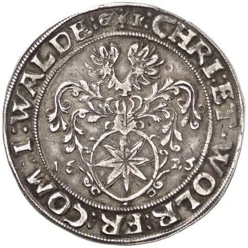 | Obverse lettering | : CHRI : ET · WOLR : FR : COM : I : WALDE: G K 16 25 (Translation: Christian and Wolrad, brothers and Counts of Waldeck) |