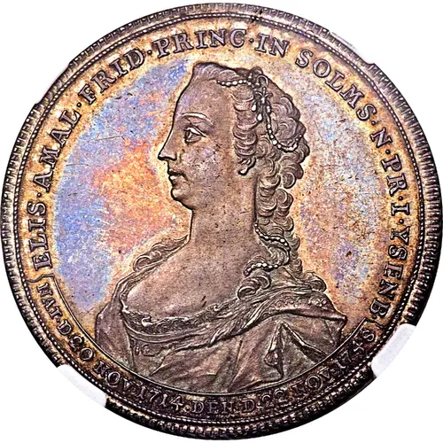| Ön yüz lejandı | ELIS.AMAL.FRID.PRINC.IN SOLMS.N.PR.I.YSENB. NAT(US).D.20 NOV 1714.DEN(ATUS).D.22 NOV.1748 |