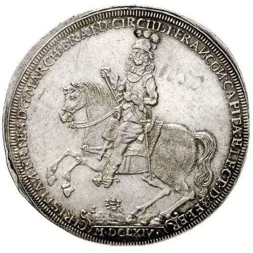 Historical Context: The 1664 Thaler of Christian Ernest marks a significant period for the Margraviate of Brandenburg-Bayreuth. Christian Ernest, who commenced his personal rule in 1664 after a regency, inherited a principality recovering from the devastations of the Thirty Years' War. This coinage served not only as a crucial instrument for trade and economic stabilization but also as a powerful declaration of his sovereignty and the re-establishment of ducal authority in the post-war Holy Roman Empire. It represents an early assertion of his long and influential reign.