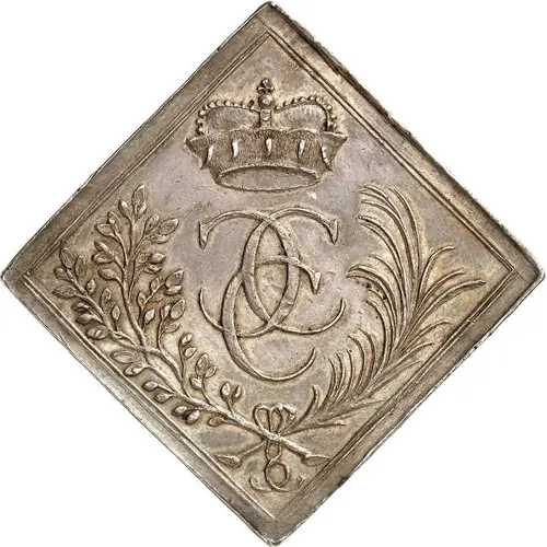 | Obverse description | Crowned triple-C monogram in laurel and palm branches. |