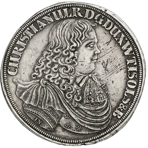 | Obverse lettering | CHRISTIAN. ULR. D. G. DUX. W. T. I. S. OLS. & B. |