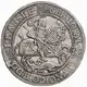 Obverse description Saint George on horseback slays dragon below, three small shields of arms divide legend with old shield of arms of Mansfeld at top