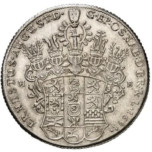 Obverse lettering ERNEST AUGUST D G EP OSNA D BR & L 1691 HB