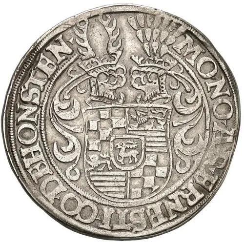 | Obverse description | 2 helmets above 4-fold arms with central shield of Klettenberg, titles of Ernst V |
