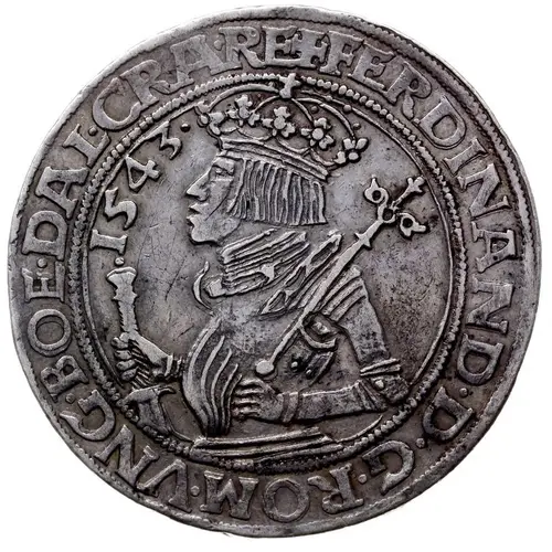 | Descripción del anverso | Portrait in armour of Ferdinand I young and without beard, facing left, with sceptre and sword, in a beaded circle. Vertical date left. |