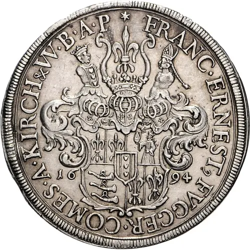| Ön yüz lejandı | FRANC.ERNEST,FVGGER.COMES.A.KIRCH&W.B.A.P 1694 |