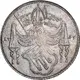 | Reverse description | Helmeted, mitered, and mantled arms with flag dividing date. |