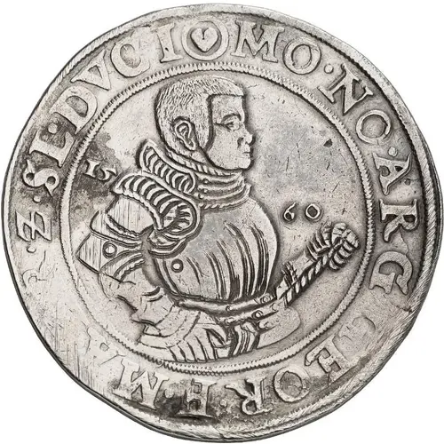 | Ön yüz lejandı | MO. NO. ARG. GEOR. F. MA. BR. Z SL. DVCI. 1560 |