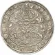 | Reverse description | Three small adjacent shields of arms, ornate helmet above, date at end of legend. |