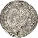 Small shield of Werden and Helmstedt arms superimposed on cross in larger shield, 2 crozier heads at upper left and right, mitre above arms, small imperial orb at top. |