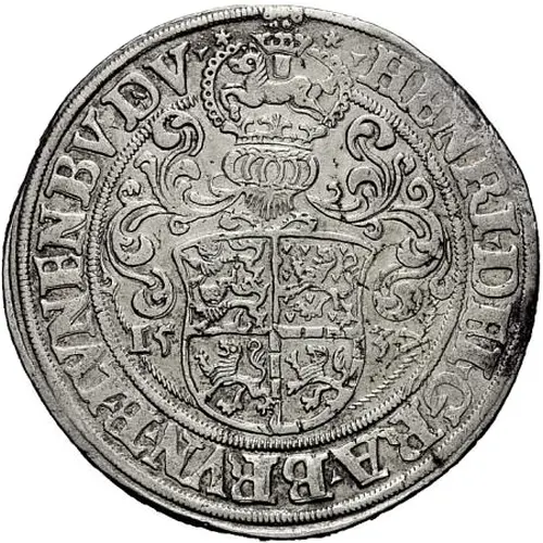| Descrizione del dritto | Helmeted 4-fold arms divide date, titles of Heinrich IX. |