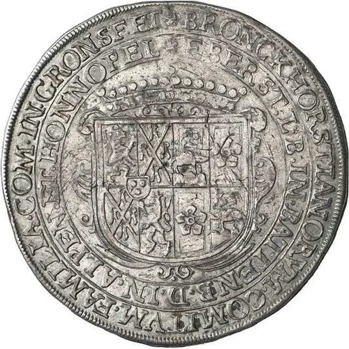 | Leyenda del anverso | ✿ BRONCKHORSTIANORVM · COMITVM · FAMILIA · COM · IN · GRONSF · ET ✿ EBERST · L · B · IN · BATTENB · D · IN · ALPEN · ET · HONNOPEL (Translation: The family of the Earls of Bronckhorst, Earls of Gronsfeld and Eberstein, free Barons in Battenburg, Lords in Alpen and Humpel) |