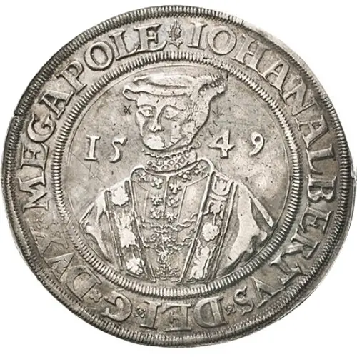 | Legenda do anverso | IOHAN. ALBERTVS. DEI. G. DVX. MEGAPOLE(N). |