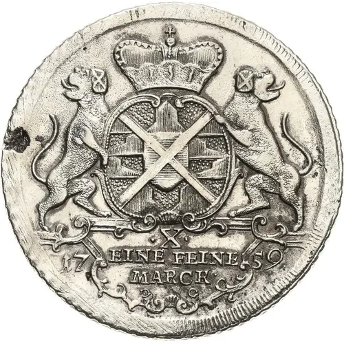 نوشته‌های روی سکه • X • EINE FEINE MARCK • 17 59