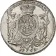 | Reverse description | Crowned crest supported by wild man and woman mint official’s initials and date below. |
