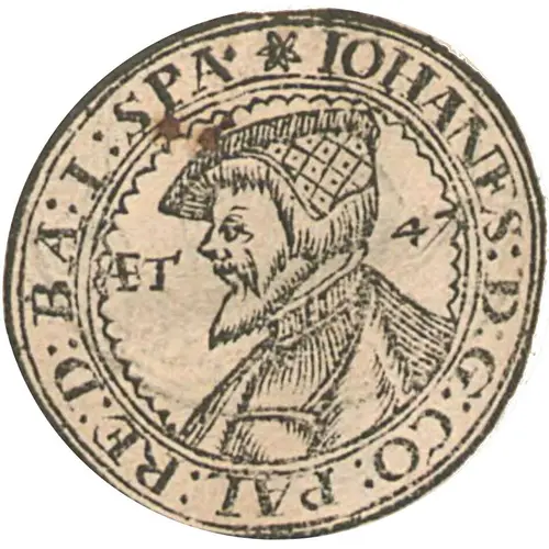 | Obverse lettering | IOHANES D G CO PAL RE D BA I SPA ET 47 |