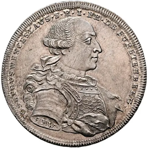 نوشته‌های روی سکه IOSEPHUS WENCESLAUS • S • R • I • PR • DE FURSTENBERG • A.RW.