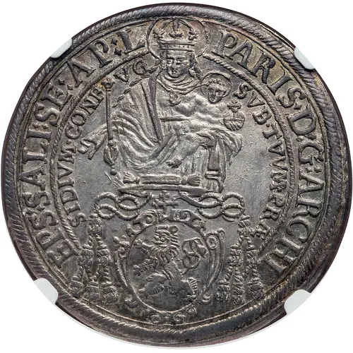 | Leyenda del anverso | PARIS.D:G:ARCHI EPS:SALI:SE:AP:L SVB TVVM PRAESIDIUM CONF |
