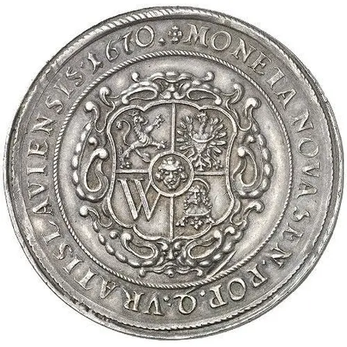 | Opschrift voorzijde | MONETA NOVASEN POP Q VRATISLAVIEENSIS 1670 |