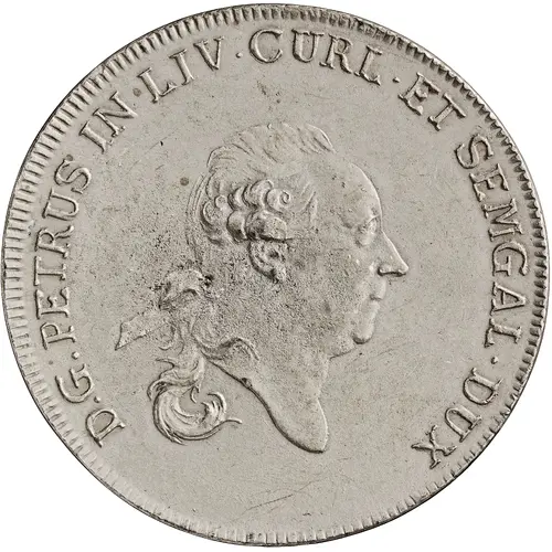 | Opschrift voorzijde | D · G · PETRUS · IN · LIV · CURL · ET · SEMGAL · DUX (Translation: With God`s grace, Peter, Duke of Livonia, Courland, and Semigallia) |