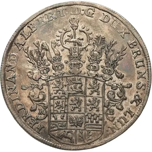 Artistry: Executed in the prevailing Baroque style of late 17th-century German numismatics, the coin likely features conjoined or facing busts of Rudolph August and Anthony Ulrich on the obverse, rendered with characteristic detail. The substantial 47mm diameter allowed for an elaborate reverse design, probably depicting a funerary monument, allegorical figures of grief, or a complex armorial arrangement surrounded by commemorative inscriptions. The anonymous engraver would have aimed for a dignified and solemn aesthetic, typical for such memorial issues.